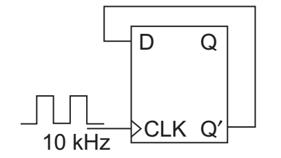 - The frequency of the clock signal applied to the rising edge triggered D flip-flop shown below is 10 kHz. What is the frequency of the signal available at Q?