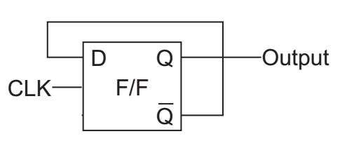 Given that initially flip-flop is cleared i.e., Q = 0. After applying the CLK pulses, we get 1, 0, 1, 0......