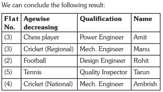 Direction: In a Public Sector Undertaking Township, there are five executives – Ambrish, Amit, Rohit, Manu and Tarun. Two of them play Cricket while the other three play different games viz. Football, Tennis and Chess. One Cricket player and a Chess player stay in the third flat, whereas the other three stay in different flats, i.e. 2nd, 4th and 5th. Two of these five players are mechanical engineers while the other three are quality inspector, design engineer and power engineer respectively. The chess player is the oldest in age while one of the cricket players, who plays at the national level, is the youngest in age. The age of the other cricket player, who plays at the regional level, lies between the football player and the chess player. Manu is a regional level player and stays in the 3rd flat while Tarun is a quality inspector and stays in the 5th flat. The football player is a design engineer and stays in the 2nd Flat. Amit is a power engineer and plays Chess while Ambrish is the mechanical engineer and plays Cricket at the national level.