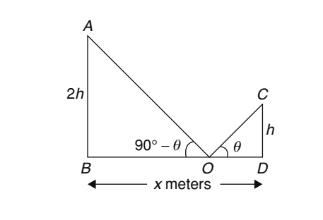 Two posts are x meter apart and the height of one is double that of the other. If from the midpoint of the line joining their feet, an observer finds the angular elevations of their tops to be complementary, then the height (in meter) of the shorter post is :