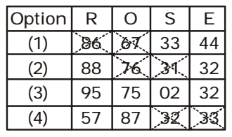 As shown in given figure , all the values for word ROSE are matched in only option ( 3 ) for every letter . So , the set for the word ROSE will be 95, 75, 02, 32 .From matrix , option ( 3 ) is correct .
