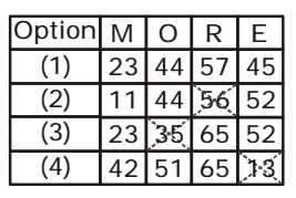 As shown in the given matrix ,we can see that all the values for word MORE are matched in only option ( 1 ) for every letter . So , the set for the word MORE will be 23, 44 57, 45 .From matrix , option ( 1 ) is required answer.