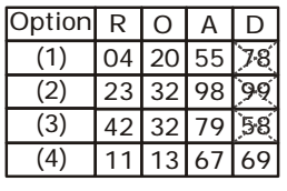 As shown in given figure , all the values for word ROAD are matched in only option ( 4 ) for every letter . So , the set for the word ROAD will be 11, 13, 67, 69 .From matrix , option ( 4 ) is correct .