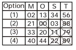 From given matrix it is clear that all the values for word MOST are matched in only option ( 1 ) for every letter . So , the set for the word MOST will be 02, 13, 34, 56 .From matrix , option ( 1 ) is required answer.