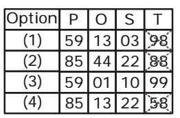 As shown in given figure , all the values for word POST are matched in only option ( 3 ) for every letter . So , the set for the word POST will be 59, 01, 10, 99 .From matrix , option ( 3 ) is correct .