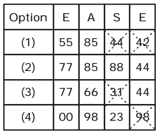 As shown in given figure , all the values for word EASE are matched in only option ( 2 ) for every letter . So , the set for the word EASE will be 77, 85, 88, 44 .From matrix , option ( 2 ) is correct .