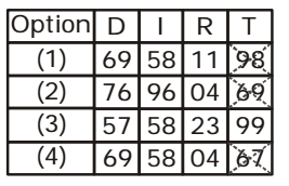 As shown in given figure , all the values for word DIRT are matched in only option ( 3 ) for every letter . So , the set for the word DIRT will be 57, 58, 23, 99 .From matrix , option ( 3 ) is correct .