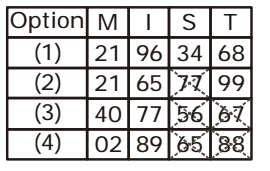 From given matrix it is clear that all the values for word MIST are matched in only option ( 1 ) for every letter . So , the set for the word MIST will be 21, 96, 34, 68 .From matrix , option ( 1 ) is correct answer.