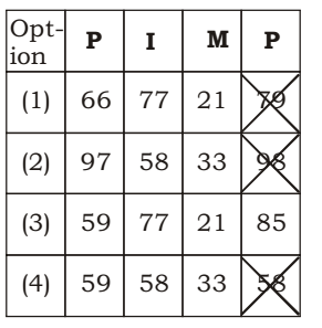 As shown in given figure , all the values for word PIMP are matched in only option ( 3 ) for every letter . So , the set for the word PIMP will be 59, 77, 21, 85 .From matrix , option ( 3 ) is correct .
