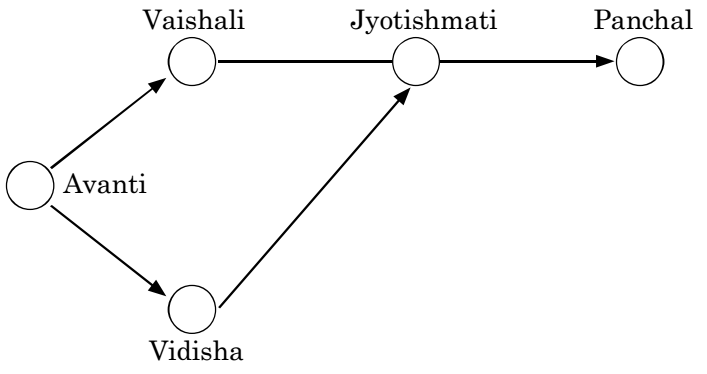 Free capacity at Avanti-Vaishali pipeline is 300, since capacity of each pipeline is 1000 and demand at Vidisha is 400 and 300 flows to Jyotishmati.