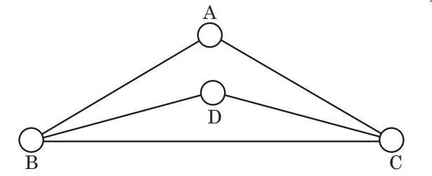 Step 1: Let starting point is A, there are 3 ways in which we could proceed, viz. AB, AD or AC.