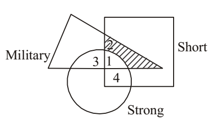 Darken portion in above diagram represents that there are 2 military officers who are short but not strong.