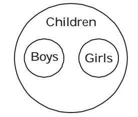 Which one of the following diagrams best depicts the relationship among Boys, Girls and Children?