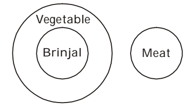 Which one of the following figures represents the relationship among Brinjal, Meat, Vegetables?