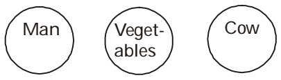 Which figure best represents the relation among Man, Vegetables and Cow?