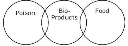Some bio-products are food while some other bio-products are poison. Also possible that some bio -products are different from poison and food both.