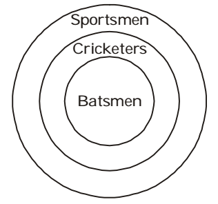 Identify the diagram that best represents the relationship among classes given below: Sportsmen, Cricketers, Batsmen