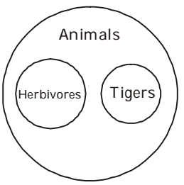 Which of the following diagrams represents the correct relationship between Herbivores, Tigers and Animals?