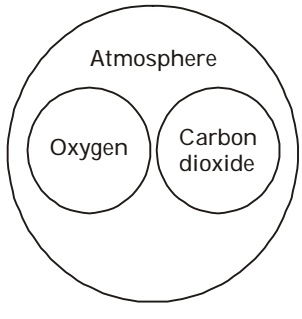 Identify the diagram that best represents the relationship among Atmosphere, Oxygen and Carbon dioxide the classes given below.