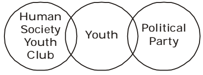 Therefore , option ( B ) represents the best relationship between Human Society – Youth Club, Political Party and Youths. As shown in given venn - diagram .