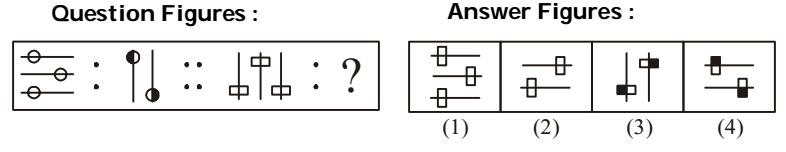 From first figure to second figure one of the three designs is deleted and the other two designs rotate through 90° clockwise and half part of each circle gets shaded. Similar changes would occur from third figure to answer figure.