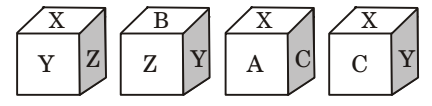 Therefore, B lies opposite X. X, Y and A are on the faces adjacent to C.