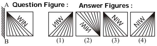Figure ( 1 ) of the answer figures is exactly the mirror image of the given original image across the given line , Because it will become opposite to the given line AB.So , correct figure will be option A .