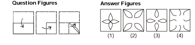 A piece of paper is folded and punched as shown below in the question figures. From the given answer figures, indicate how it will appear when opened?