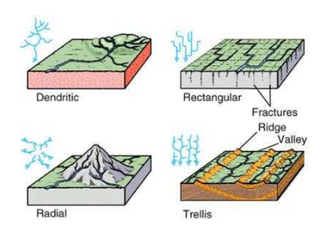 When a river is joined by its tributaries at almost right angles, it develops a trellis pattern. Trellis pattern develops where hard and soft rocks exist parallel to each other.