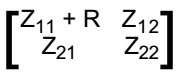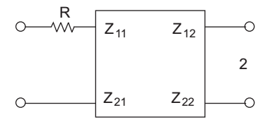 A 2-port Network has Z-parameters Z11 Z12 If the network is augmented by adding an impedance R at the input port as shown, the Z-parameters of the augmented network will be— Z21 Z22