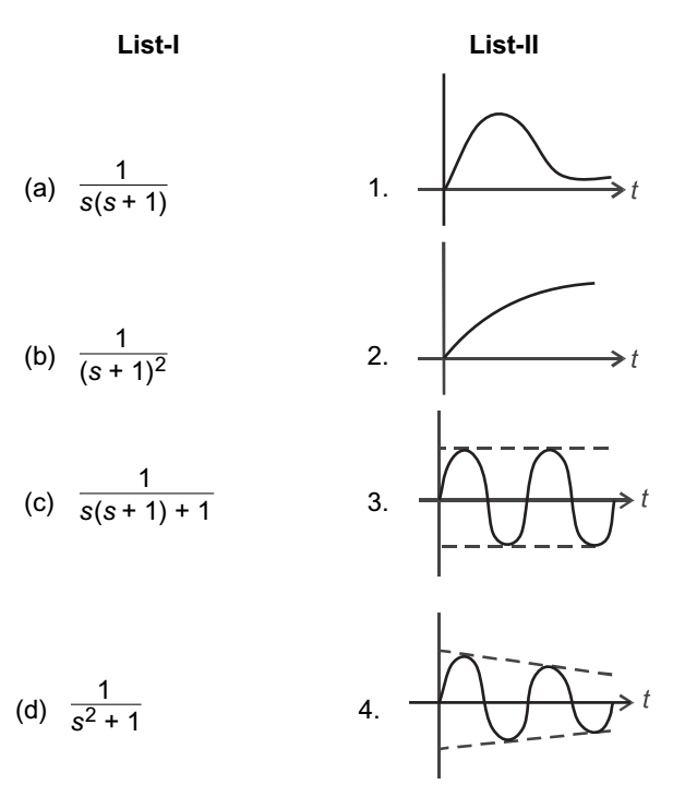 Match List-I (transfer function) with List-II (impulse response) and select the correct answer using the codes given below the lists—