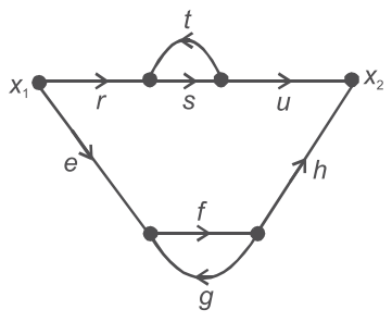For the signal flow graph shown below, the transmittance between X2 and X1 is—