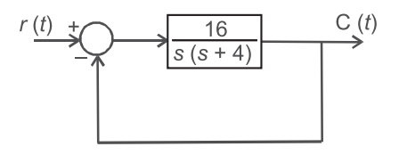 In the system shown in given figure, r(t) = sin ωt. The steady-state response C (t) will exhibit a resonance peak at a frequency of—