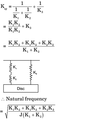 3 are the torsional stiffness of the respective shafts. The natural frequency of torsional oscillation of the disc is given by