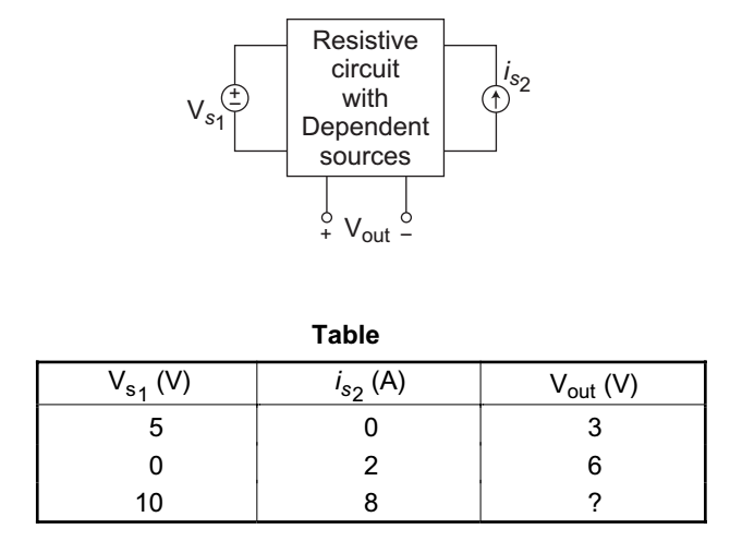 - A linear resistive circuit has two inputs Vs1 and is2 with output Vout, as shown below. Table below shows the result of two sets of measurement taken in laboratory. Find the output voltage when the inputs are Vs1 = 10V and is2 = 8A.