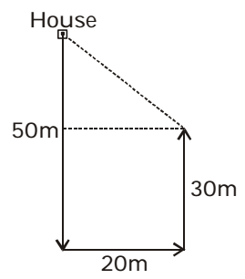 - Radhika went 50 metres south from her house then turned left and went 20 metres then turning, to north she went 30 metres. In which direction is her home from this point?
