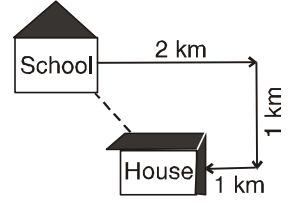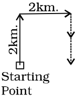 - Gopal started walking 2 km straight from his school. Then he turned right and walked 1 km. Again he turned right and walked 1 km to reach his house. If his house is south-east from his school, then in which direction did Gopal start walking from the school?