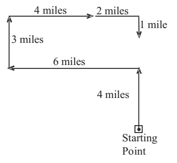 - A man starts from a point, walks 4 miles towards north and turns left and walks 6 miles, turns right and walks for 3 miles and again turns right and walks 4 miles and takes rest for 30 minutes. He gets up and walks straight 2 miles in the same direction and turns right and walks one mile. What is the direction he is facing?
