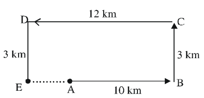 - Arun started from point A and walked 10 kms East to point B, then turned to North and walked 3 kms to point C and then turned West and walked 12 kms to point D, then again turned South and walked 3 kms to point E. In which direction is he from his starting point?