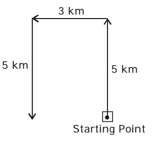 - A starts from a point and walks 5 kms north, then turns left and walks 3 kms. Then again turns left and walks 5 kms. Point out the direction in which he is going now.