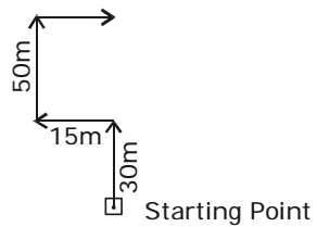 - Raju is standing facing north. He goes 30 metres ahead and turns left and goes for 15 metres. Now he turns right and goes for 50 metres and finally turns to his right and walks. In which direction is he heading?