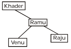 - Raju is Ramu’s neighbour and he stays 100 metres away towards southeast. Venu is Raju’s neighbour and he stays 100 metres away towards southwest. Khader is Venu’s neighbour and he stays 100 metres away towards northwest. Then where is the position of Khader’s home in relation to Ramu’s?