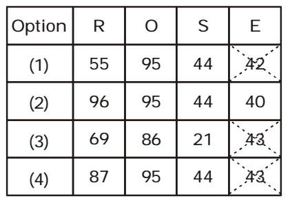 As shown in given figure , all the values for word ROSE are matched in only option ( 2 ) for every letter . So , the set for the word ROSE will be 96, 95, 44, 40 .From matrix , option ( 2 ) is correct .