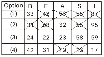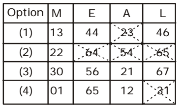 From given matrix it is clear that the set for the word MEAL will be 30, 56, 21, 67 .Hence , option ( 3 ) is required answer .
