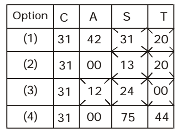 As shown in given figure , all the values for word CAST are matched in only option ( 4 ) for every letter . So , the set for the word CAST will be 31, 00, 75, 44 .From matrix , option ( 4 ) is correct .