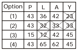 As shown in given figure , all the values for word PLAY are matched in only option ( 4 ) for every letter . So , the set for the word PLAY will be 43, 65, 62, 45 .From matrix , option ( 4 ) is correct .