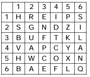 - In the following question, a word is represented by a set of numbers as given in any one of the alternatives. The sets of numbers given in the alternatives are represented by alphabets as in the matrices given below. The columns and rows of matrix are numbered from 1 to 6. A letter from these matrices can be represented first by its row and next by its column number, e.g., ‘A’ can be represented by 42, ‘S’ can be represented by 21, etc. Similarly, you have to identify the set for the word PLAY.
