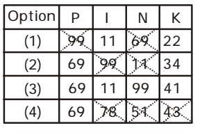 As shown in given figure , all the values for word PINK are matched in only option ( 3 ) for every letter . So , the set for the word PINK will be 69, 11, 99, 41 .From matrix , option ( 3 ) is correct .