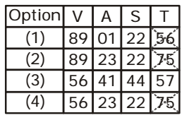 As shown in the given matrix , all the values for word VAST are matched in only option ( 3 ) for every letter . So , the set for the word VAST will be 56, 41, 44, 57 .From matrix , option ( 3 ) is required answer.