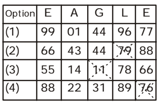 As shown in given figure , all the values for word EAGLE are matched in only option ( 1 ) for every letter . So , the set for the word EAGLE will be 99, 01, 44, 96, 77 .From matrix , option ( 1 ) is correct .